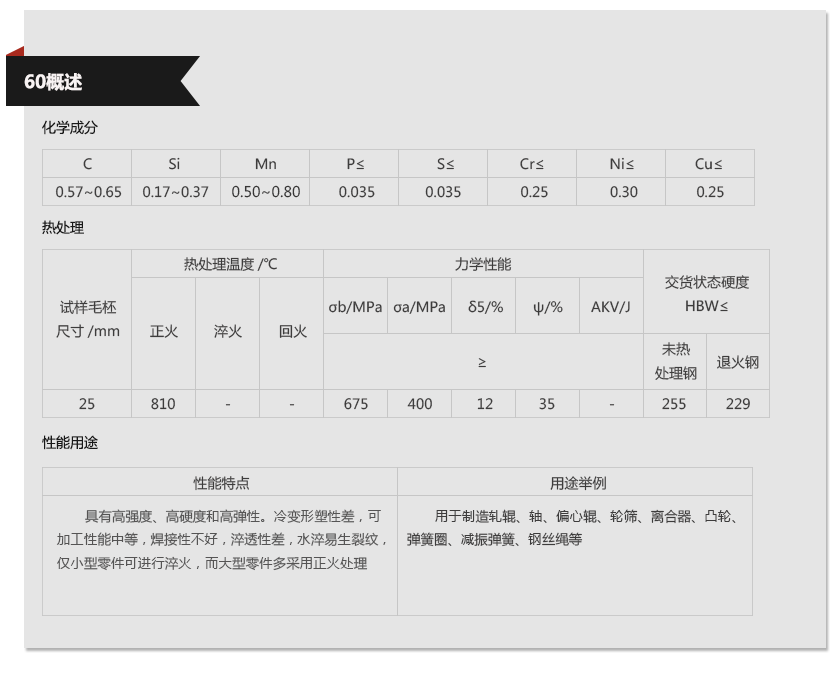 牌 号:60#碳素钢